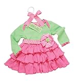 Mud Pie Baby Little Sprout Long Sleeve Cotton Ruffle Dress with Flower, Green/Pink, 0 - 6 Months